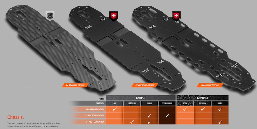 The car's chassis can be used to tune its "flex" properties, helping it to absorb bumps, which can be helpful on low-grip and bumpy tracks. See our article on flex to learn more.