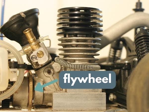 What is the "flywheel" on an RC car engine, and what does it do?