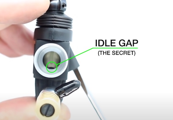 An RC car engine's idle gap is the width of the carb opening when the throttle is at idle. It controls the amount of oxygen that is allowed into the engine to mix with fuel when the engine is idling.