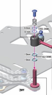 On on-road pan cars, the kingpin also plays a role in damping. The steering block rotates on the kingpin, and the space between the kingpin and the steering block is used to create damping by filling the space with heavy oil or grease. Learn more about damping.