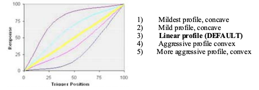 You can choose a steeper throttle profile to give more throttle response when you begin to pull the trigger and less as you pull the trigger further, or a milder curve will give you slower response early on, but a stronger throttle response as you pull the trigger all the way.