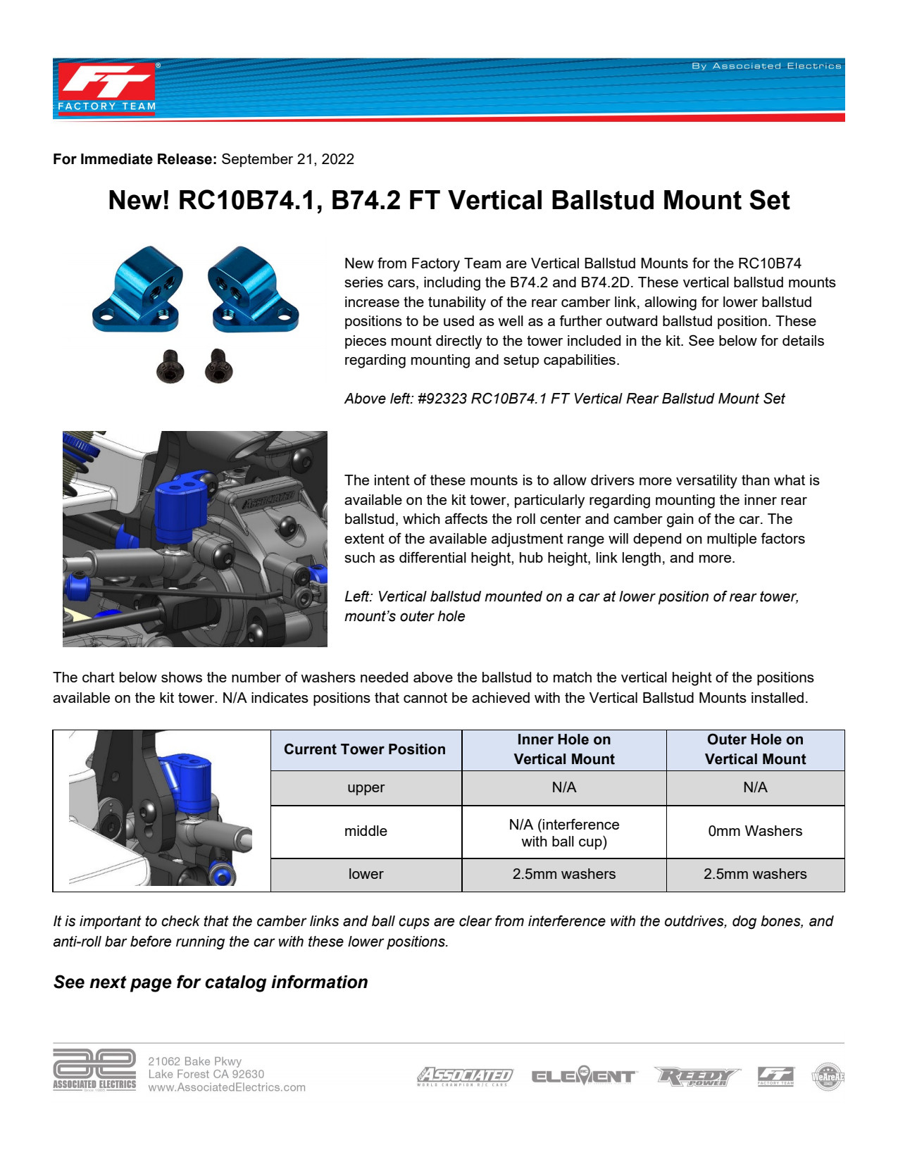 ReferenceSource: Team AssociatedTeam Associated B74.1/2 Vertical Ball Stud Mount Info SheetOpen Document